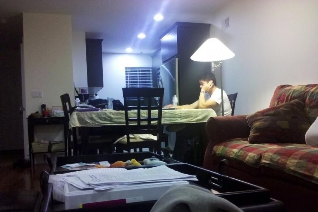 Kevin studying hard